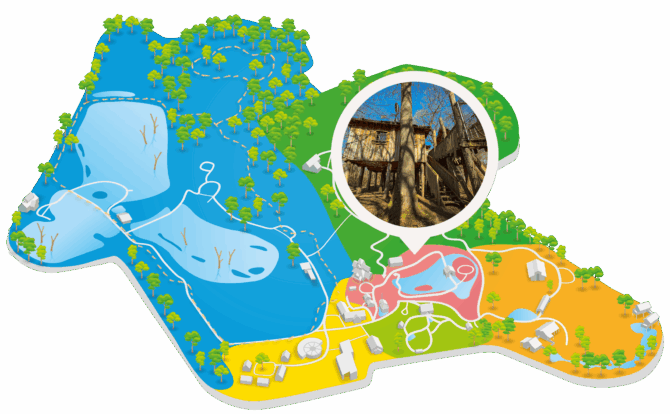 Idéale pour un séjour en famille, cette cabane en bois sur pilotis vous offre une expérience unique et magique aux sons de la Nature. En empruntant le pont suspendu, vous tomberez nez-à-nez avec d’adorables pandas roux et pourrez partir à l’aventure sur le parcours « Mission Biodiversité : le Voyage de Néo ». Serez-vous prêts à relever de nombreux défis pour la sauvegarde des espèces, à franchir des ponts suspendus ou à faire l’expérience du parcours pieds nus ?